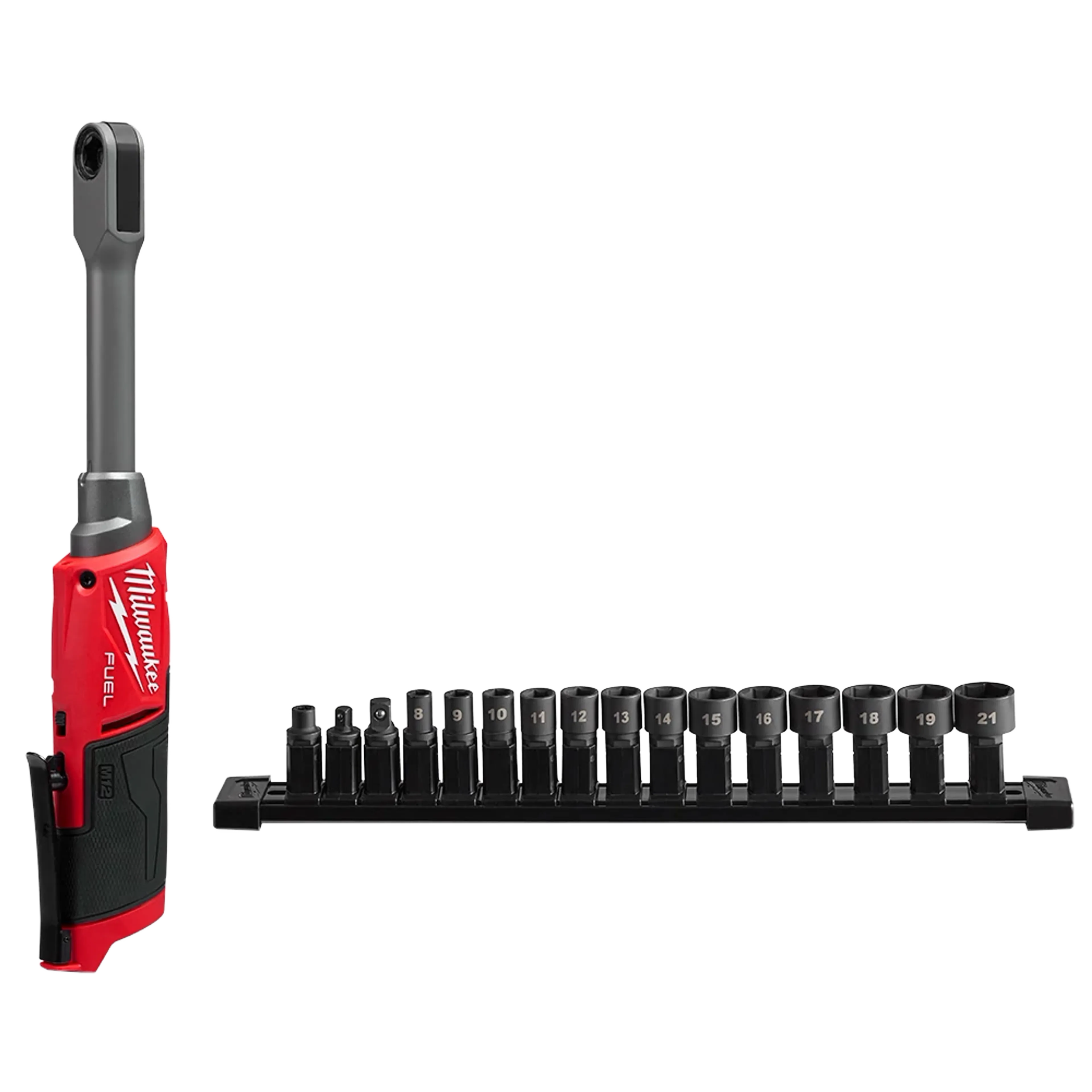Our Milwaukee setup has you covered — from the Insider Ratchet to the Stubby Impact, Impact Driver, and Drill. Pro-grade cordless power.
